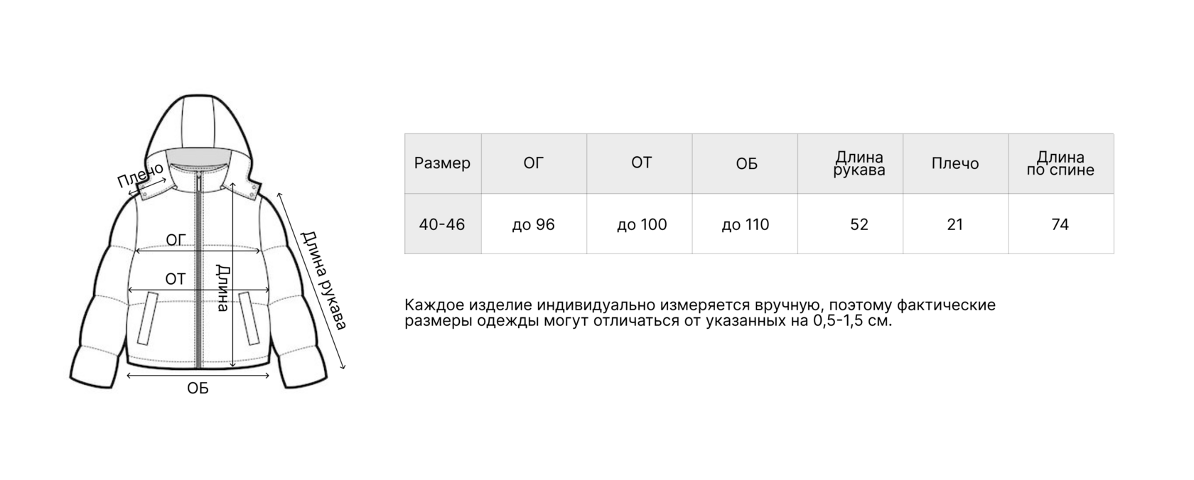Обхват груди: 90 см.